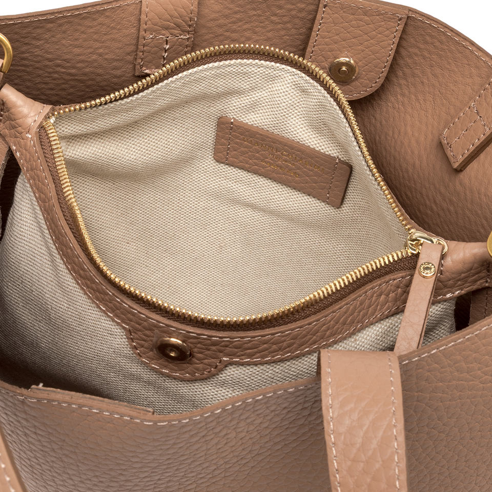 Amira è la nuova shopping bag di Gianni Chiarini Firenze, realizzata in pelle double grana maxi, che si distingue per il suo design minimalista e le linee essenziali. Perfetta per completare sia i look da lavoro che quelli quotidiani, questa borsa è l’accessorio ideale per ogni occasione. Con un ampio scomparto principale, due manici in tono e una tracolla regolabile e removibile, offre una doppia modalità di utilizzo, anche crossbody. Un’alleata perfetta per donne dinamiche che non vogliono rinunciare allo stile. Dimensioni: 36x25x14 cm.