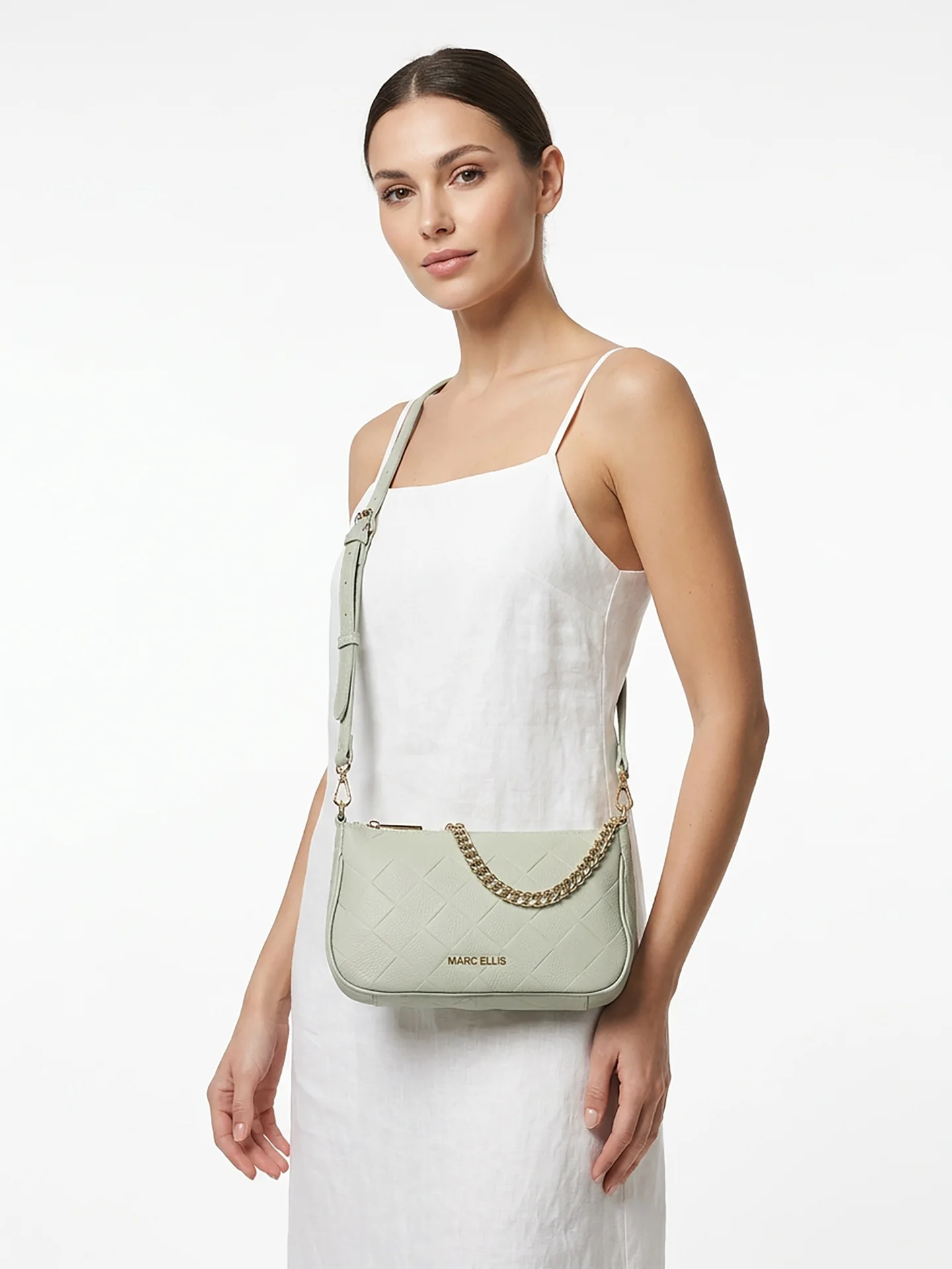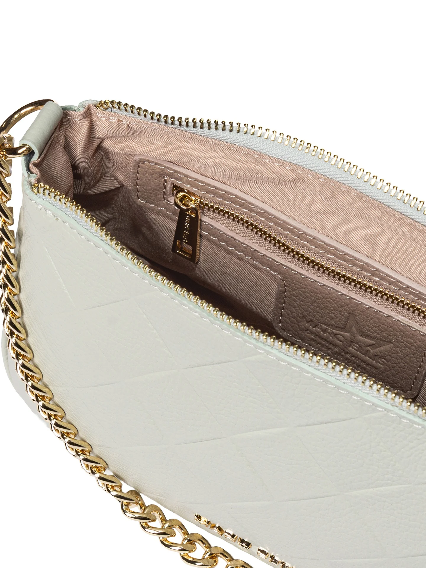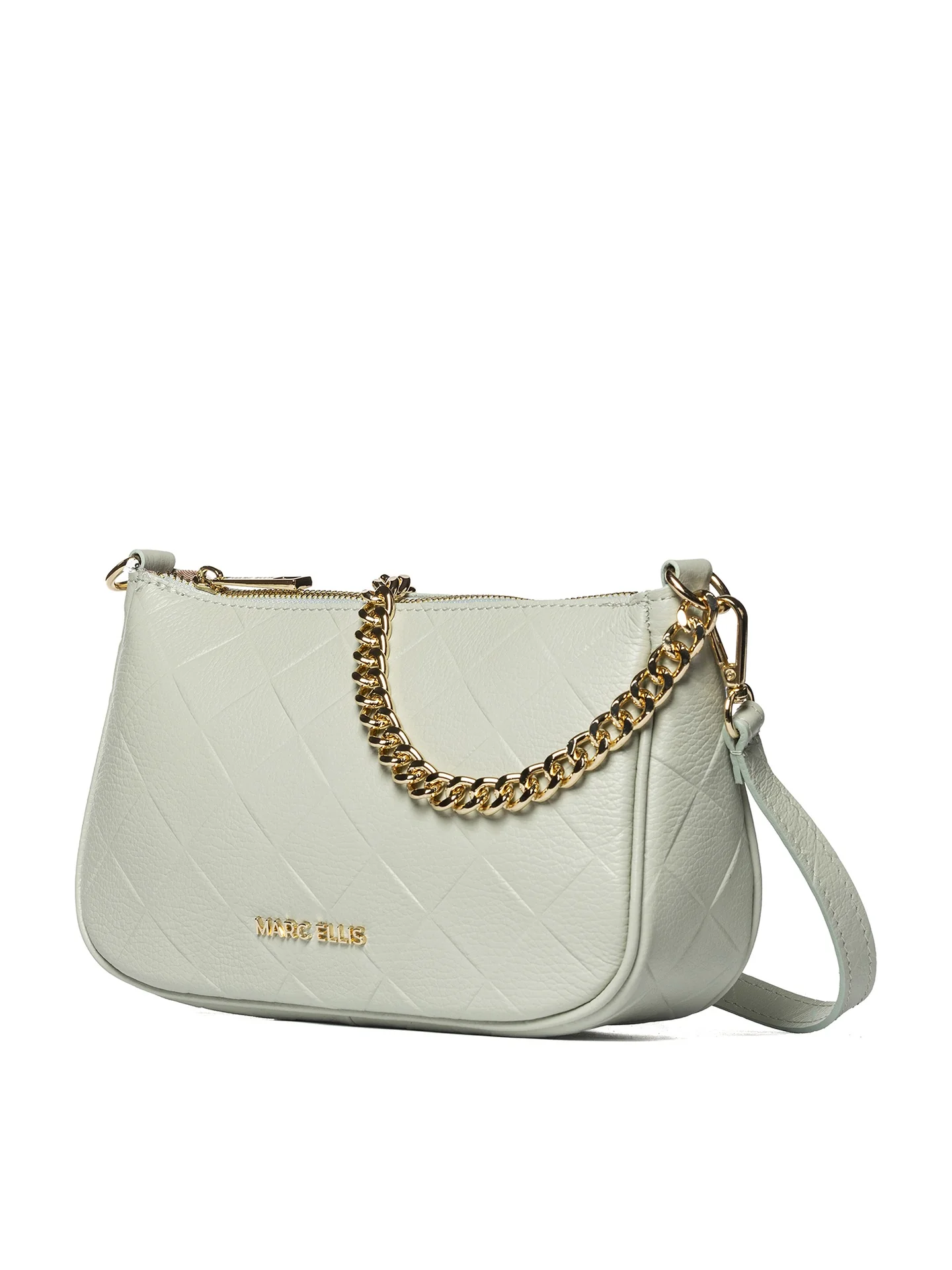 La tracolla a catena dorata, oltre ad aggiungere un tocco glamour, permette di portare la borsa comodamente a spalla o a traversa, adattandosi ad ogni occasione d’uso.