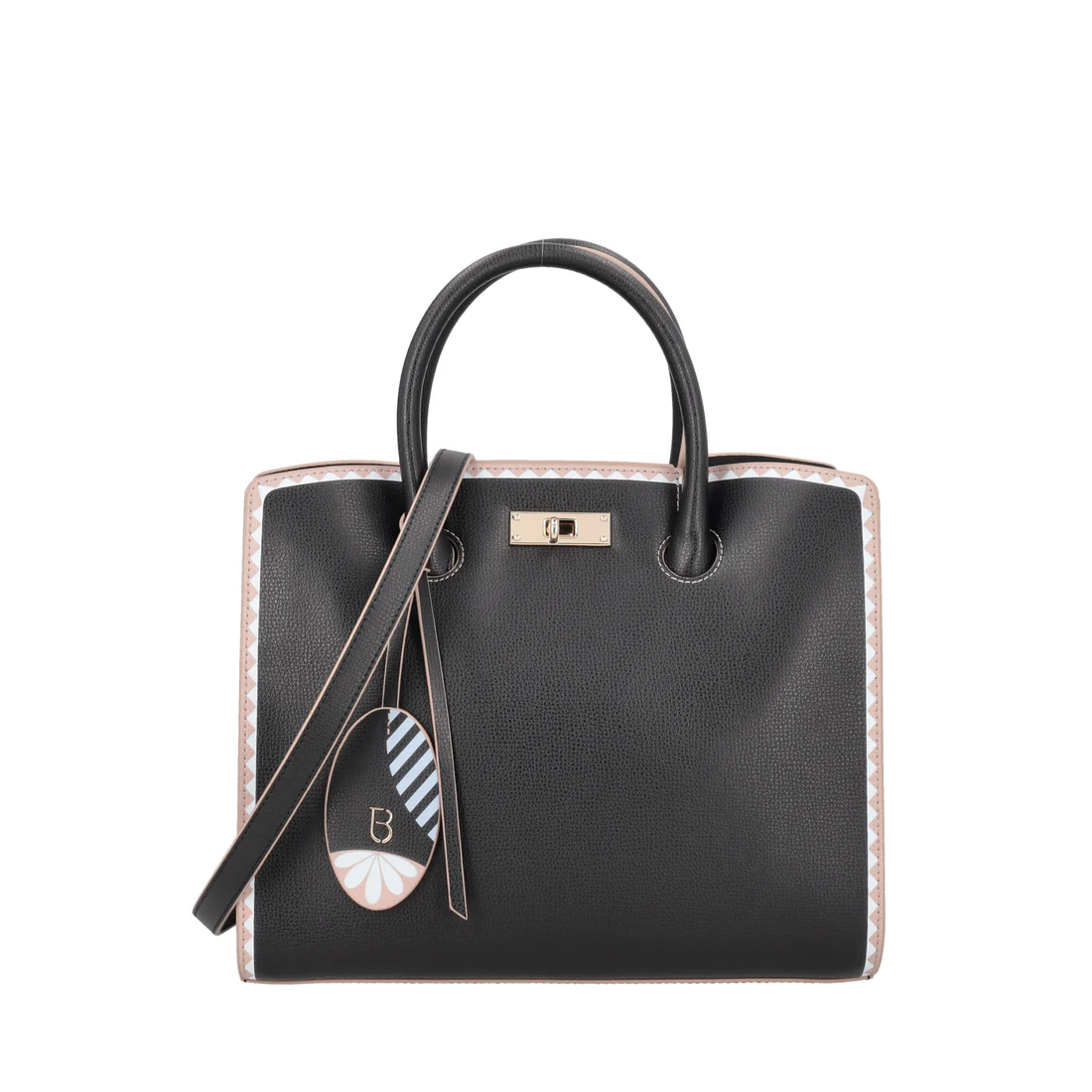 Scegli l’eleganza senza compromessi. La borsa a mano in pelle colore nero è un connubio perfetto tra stile e funzionalità. La chiusura con girello dona un tocco di raffinatezza, mentre l’interno, con uno scomparto unico, ti permette di organizzare tutto ciò di cui hai bisogno fuori casa. La tracolla removibile rende la borsa a mano in pelle un accessorio versatile e di classe, capace di accompagnarti con stile in ogni occasione.
