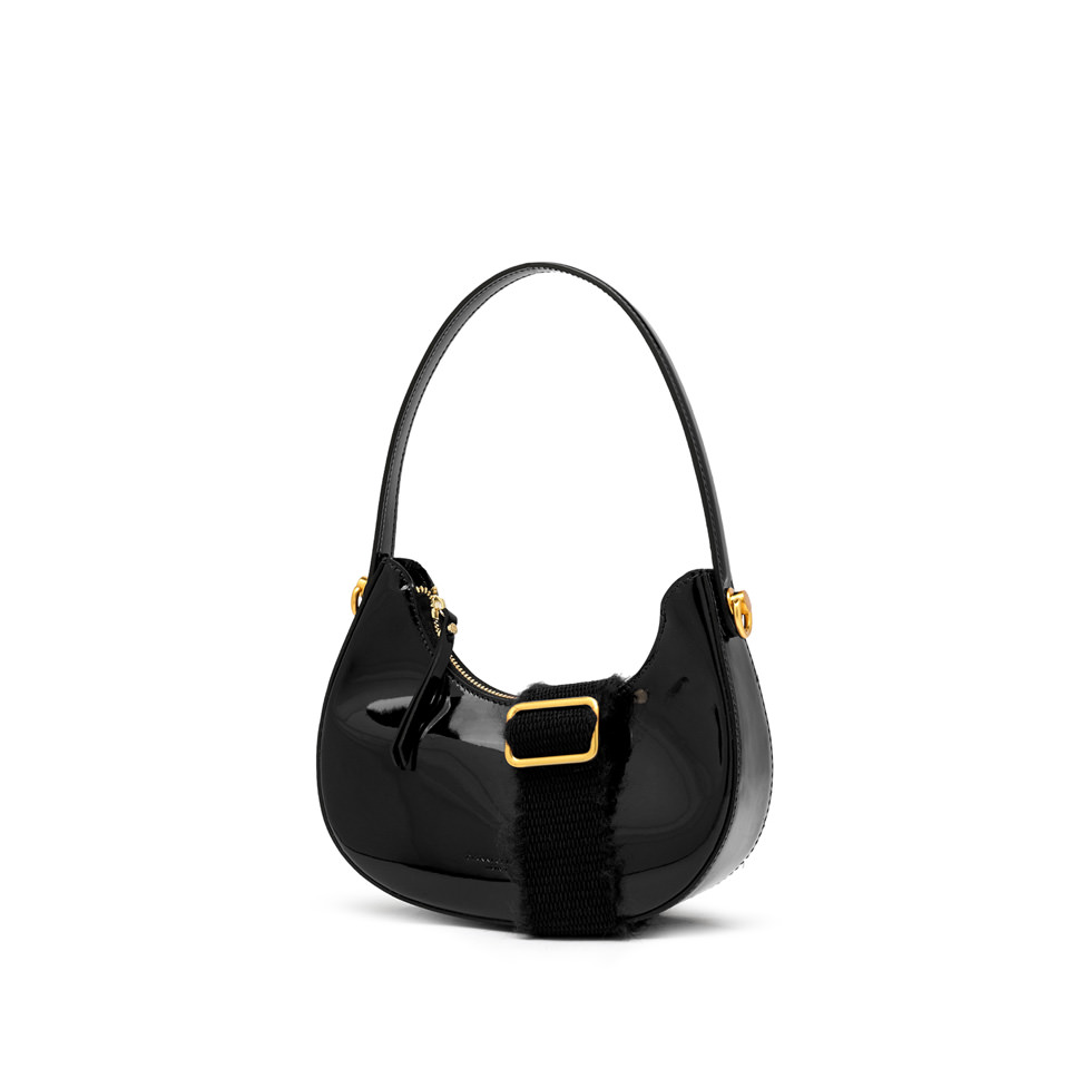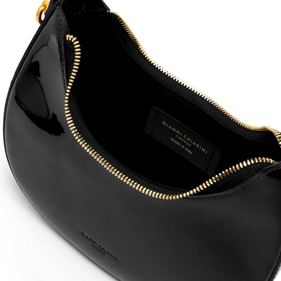 Blanche è una borsa dal carattere disinvolto e femminile, realizzata in pelle liscia verniciata dall’effetto brillante e arricchita da dettagli in metallo che ne esaltano la lucentezza. La tracolla removibile e regolabile in tessuto offre una doppia portabilità, permettendo di indossarla a mano o crossbody. Un accessorio versatile, perfetto per ogni occasione. Dimensioni: 23x19x8 cm.