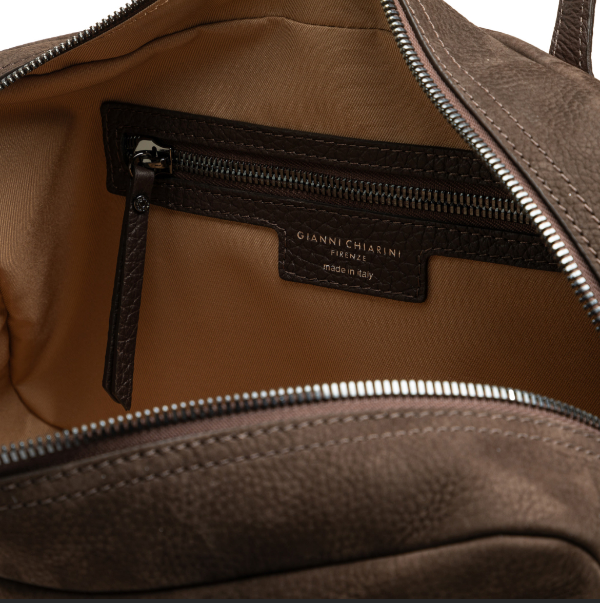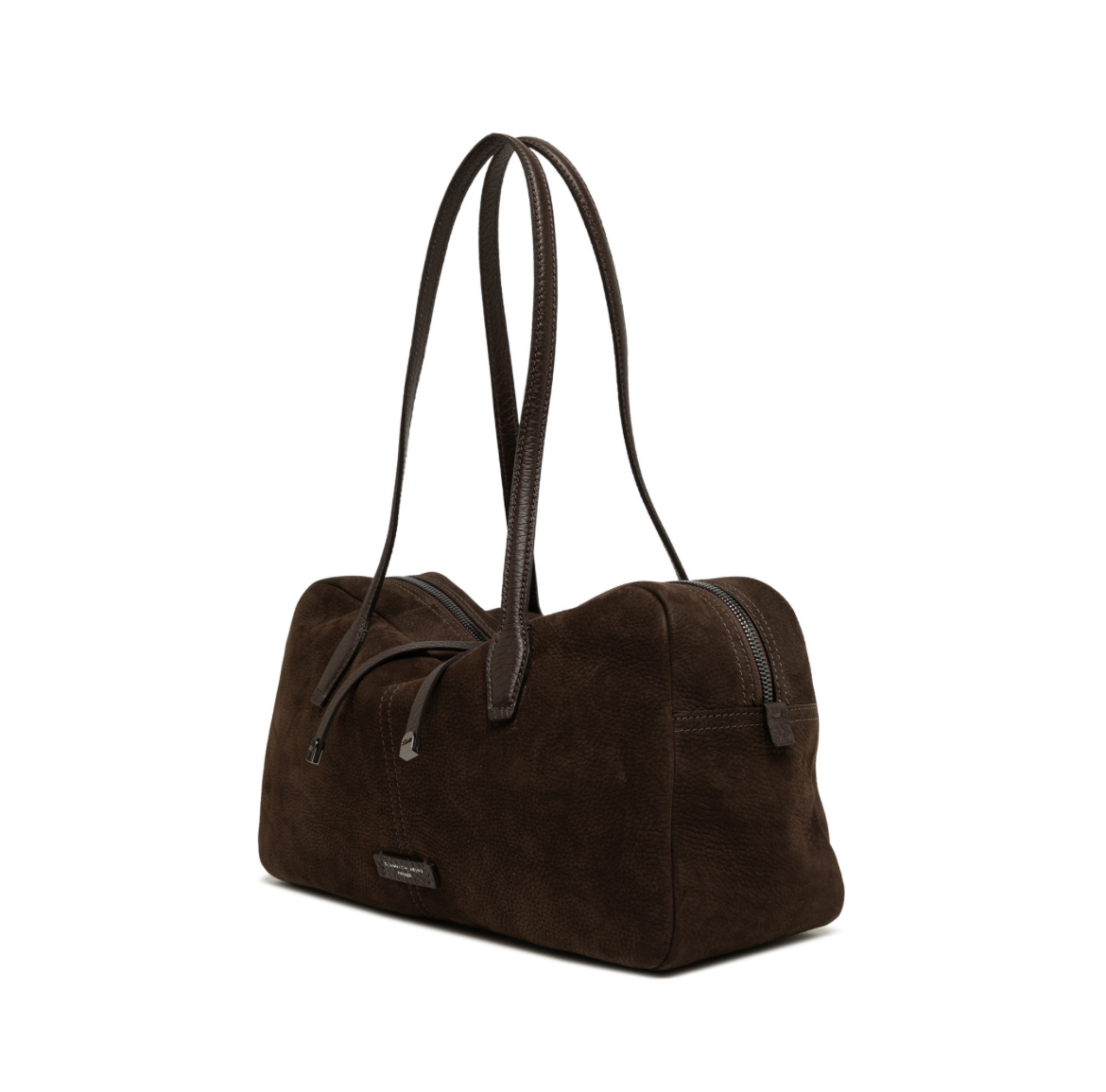 Aryna è la nuova borsa a mano, in pelle nabuk, l’accessorio ideale per una donna sportiva dallo stile disinvolto, ma femminile. Presenta uno scomparto principale con zip doppio cursore e tirazip in metallo. I rivetti logati arricchiscono il design, mentre i due manici superiori offrono una portabilità handle. Dimensioni: 38x20x14 cm.