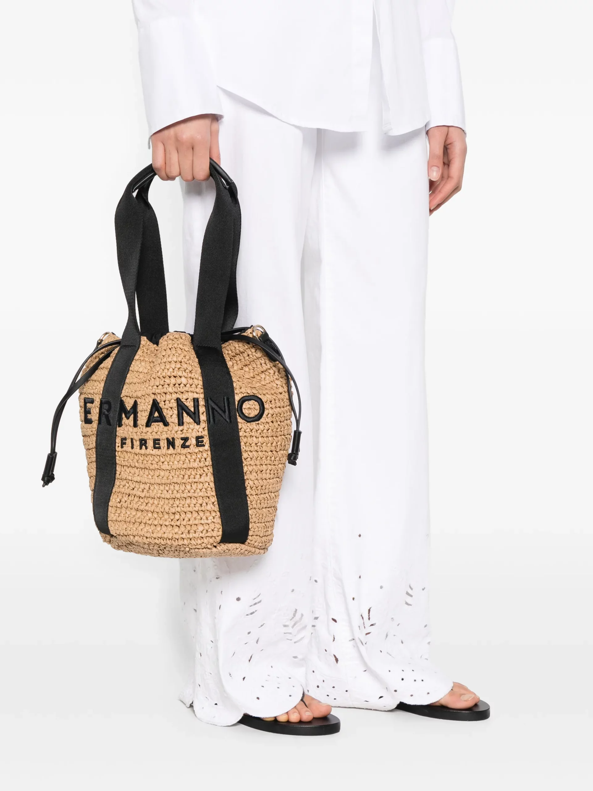 Secchiello in raffia con logo a rilievo ricamato di Ermanno Scervino.