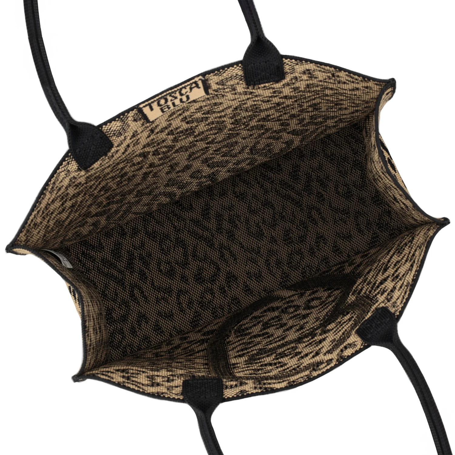 Ti accompagnerà nelle giornate più impegnative la shopping media con stampa animalier maculata griffata Tosca Blu, con i suoi robusti manici e l’ampio scomparto interno. Contraddistinta dalla stampa maculata e impreziosita dall’iconico monogramma, è la borsa perfetta per chi cerca la praticità ma non vuole rinunciare allo stile. Questa shopping media con stampa animalier ti conquisterà fin dal primo sguardo.