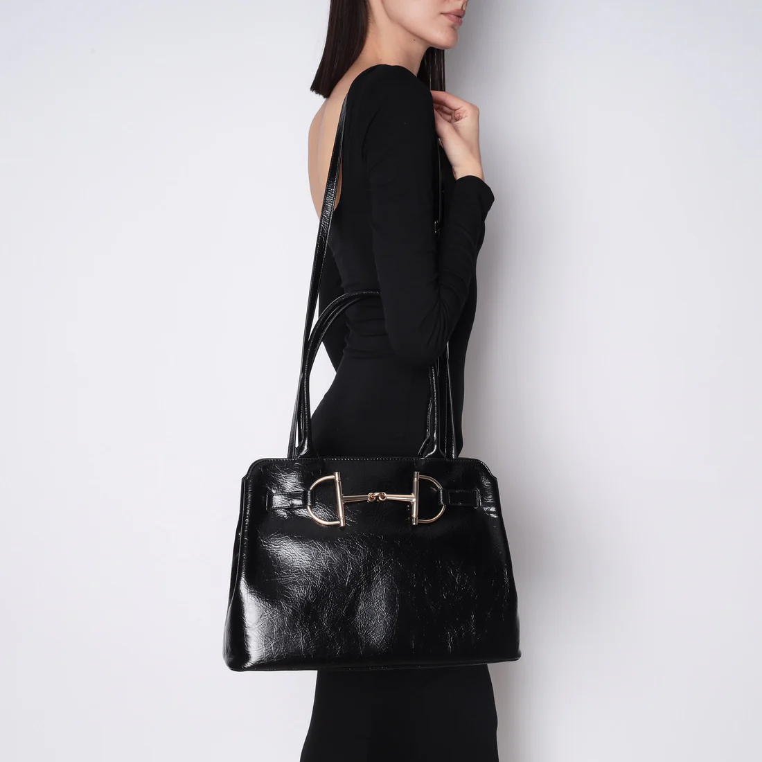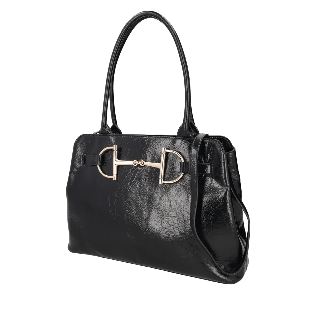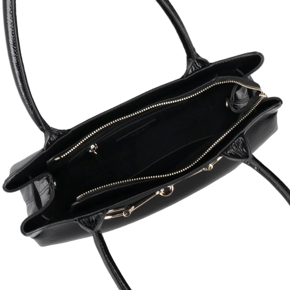Scopri l’eleganza funzionale di questa shopping bag di colore nero griffata Tosca Blu. La borsa unisce uno stile minimalista a dettagli di stile come il morsetto metallico sul fronte. La sua capienza la rende perfetta per accompagnarti nelle tue giornate, garantendoti lo spazio di cui hai bisogno. Sicura, grazie alla chiusura a zip, è anche versatile, grazie ai doppi manici e alla tracolla regolabile e removibile. Puoi scegliere se indossare questa shopping bag a spalla, a tracolla, oppure di portarla a mano, a seconda delle occasioni.