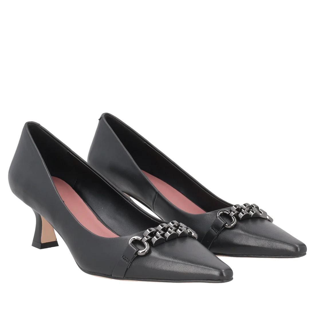 Aggiungi un tocco di fascino senza tempo ai tuoi outfit con queste décolleté con accessorio di colore nero. Un modello classico che si reinventa grazie all’accessorio che cattura lo sguardo e dona carattere al design essenziale della calzatura realizzata in morbida pelle. La silhouette elegante incontra la comodità di un tacco basso a zampa di elefante pensato per offrirti stabilità. Perfette per dare un twist sofisticato al tuo stile, queste décolleté con accessorio sapranno accompagnarti con eleganza in ogni momento della giornata.