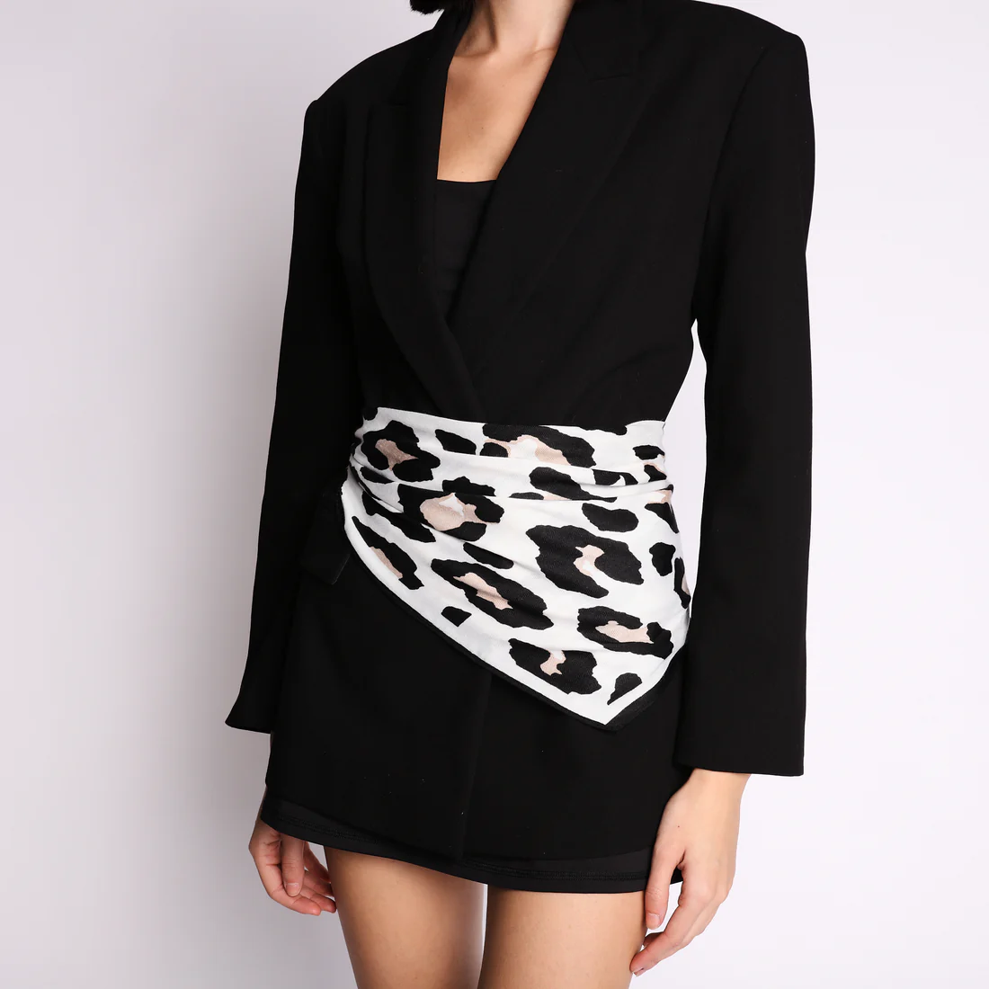 Il foulard con stampa animalier firmato Tosca Blu è l’accessorio versatile e deciso che non può mancare nel tuo guardaroba. Declinato in color beige, presenta una texture maculata, incorniciata dal bordo nero, che crea un effetto pulito ed elegante. La mano è piacevole al tatto e la sua leggerezza permette di modellarlo facilmente: annodato al collo, tra i capelli o applicato al manico della borsa, questo foulard con stampa animalier è l’accessorio perfetto per chi ama distinguersi.