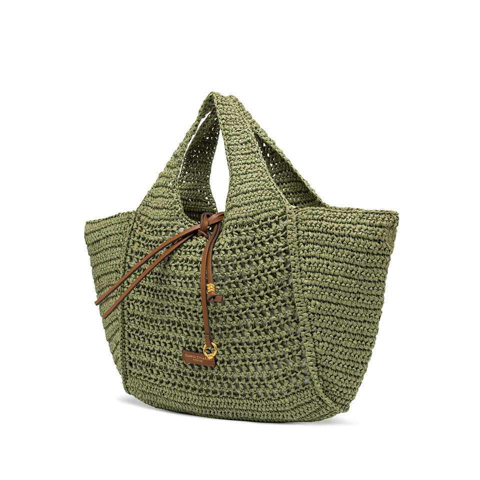 Nefeli è la nuova tote bag di Gianni Chiarini Firenze, realizzata in paglia crochet, perfetta per affrontare con leggerezza e stile le giornate estive. Presenta una chiusura con cordoncino e dettagli in metallo che donano un tocco luminoso al design. Dimensioni: 44x31x7 cm.