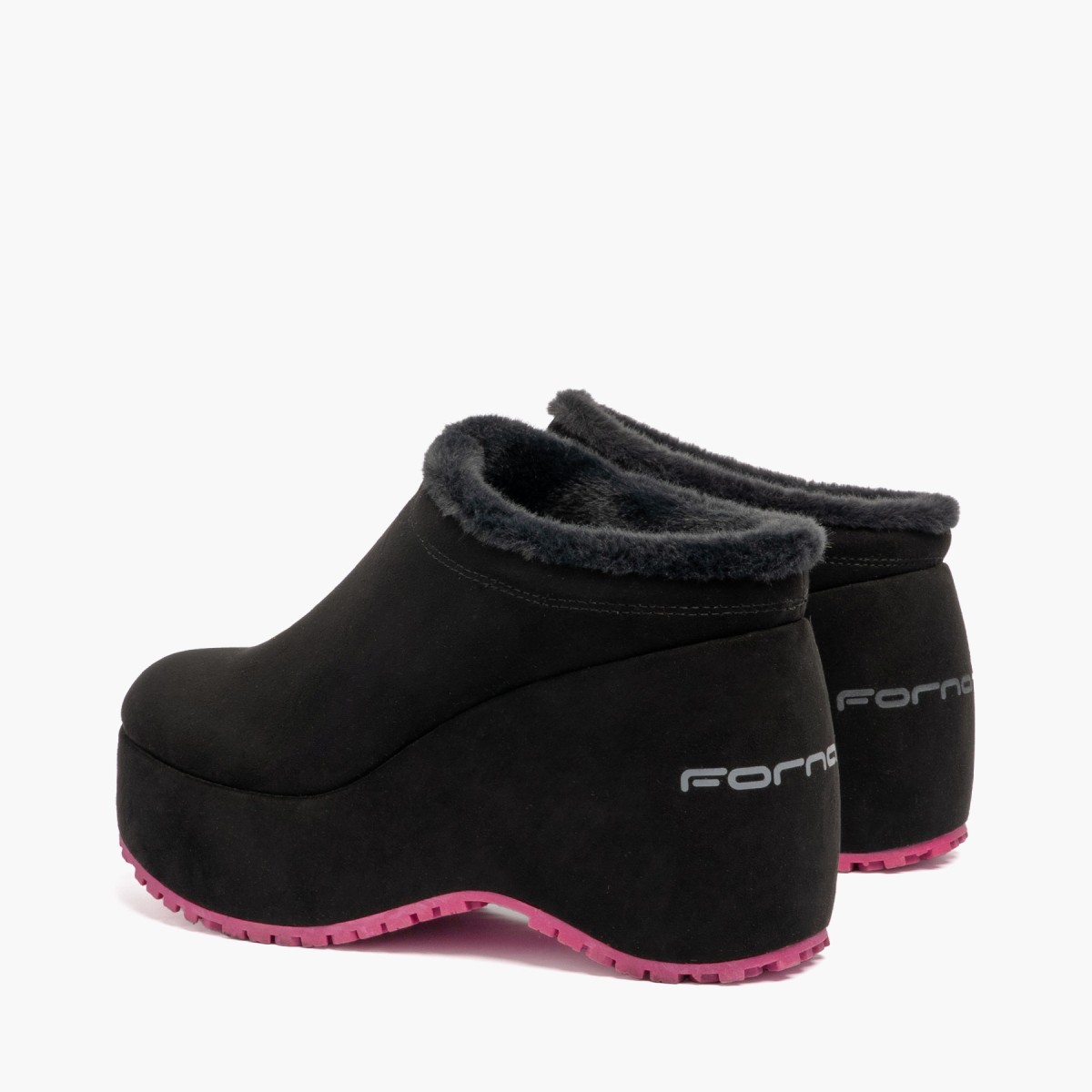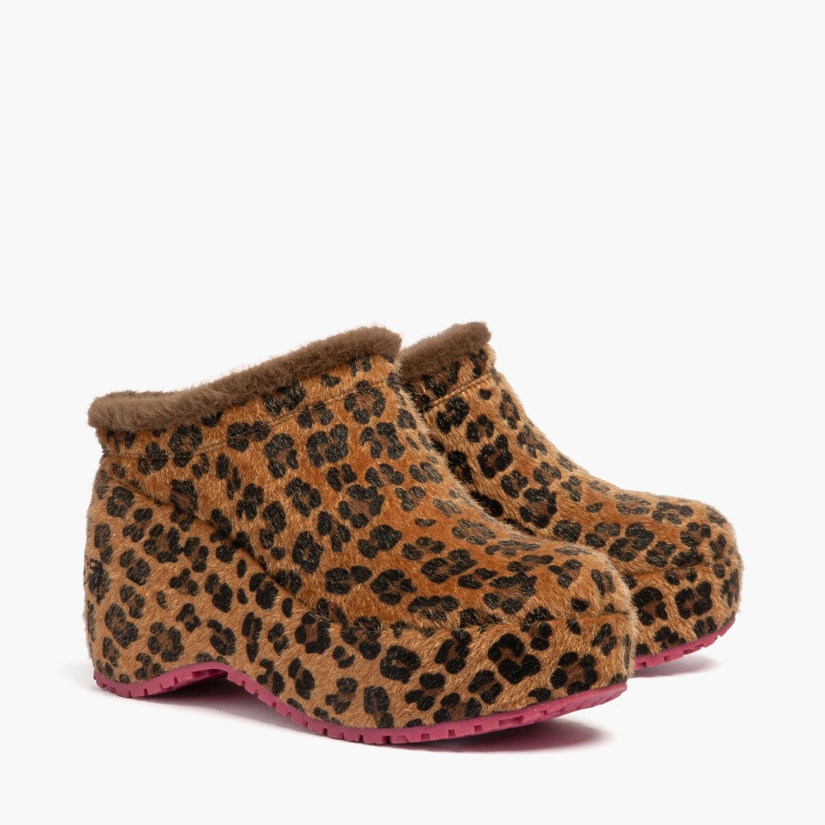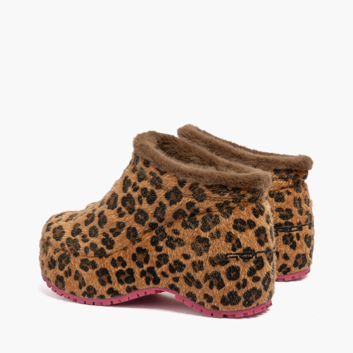 Vibes anni ’70 e trend contemporanei. I sabot animalier con zeppa, interno caldo in eco-pelliccia e iconica suola pink firmata Fornarina, reinterpretano lo stile rétro con un twist moderno. Un dettaglio per affrontare la stagione fredda con stile.