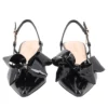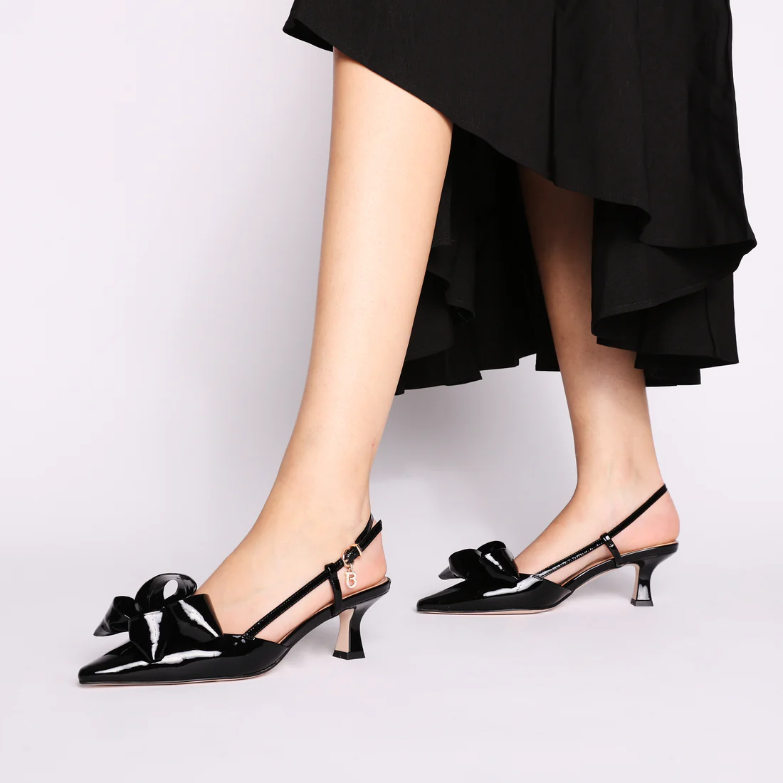 Lasciati conquistare da queste slingback con fiocco realizzate interamente in pelle verniciata di color nero. A caratterizzare questo modello è un fiocco scultoreo sulla punta sfilata, un dettaglio che infonde al design personalità ed eleganza. Il tacco a rocchetto confortevole e l’iconico charm monogramma sul cinturino completano un modello curato in ogni particolare. Abbina le slingback con fiocco a un denim cropped e una camicia in seta oversized, in perfetto equilibrio tra casual e lusso discreto.