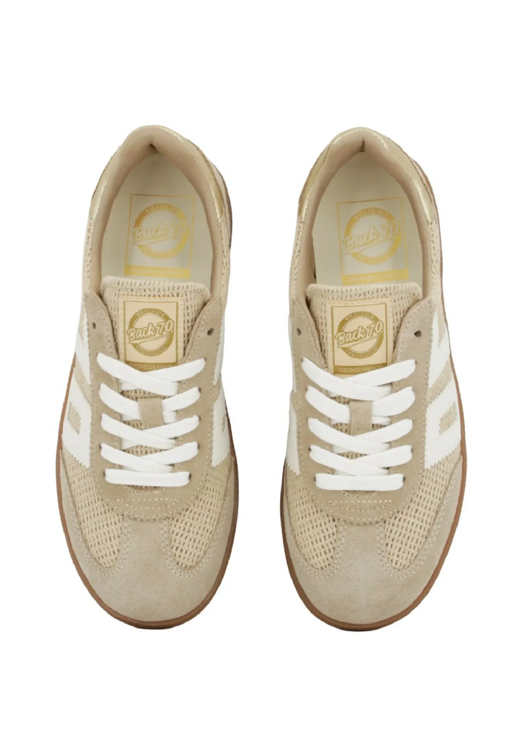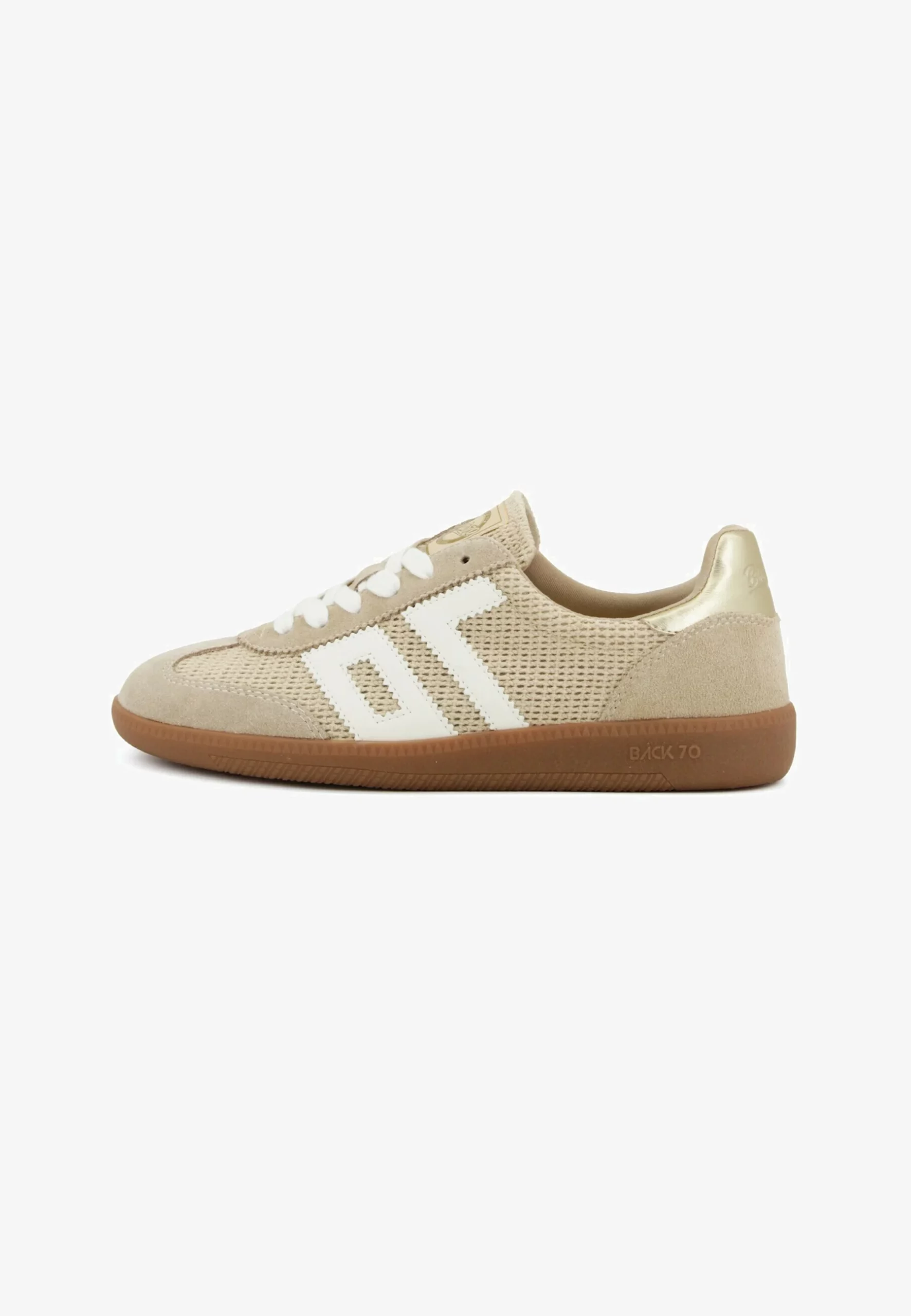 Sneakers in tessuto color corda con inserti in camoscio e fondo gomma color naturale.