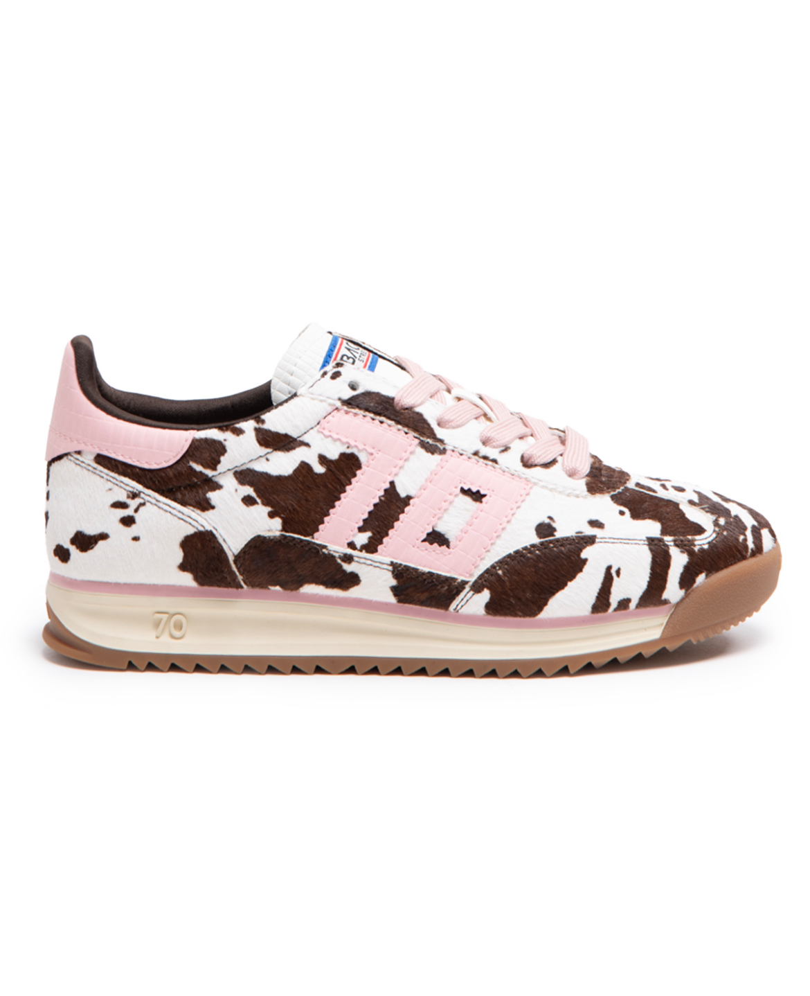 Una versione giocosa delle sneaker Back 70 Jogger, questa versione con stampa muccata si distingue per la sua audace tomaia in pony. Distintiva e di carattere, fonde fascino rustico e stile urbano, perfetta per aggiungere un dettaglio divertente e distintivo ai tuoi look autunnali/invernali.