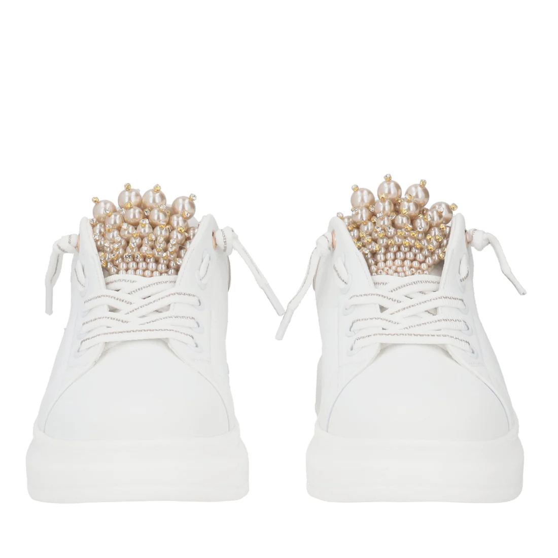 Sneaker slip-on “Chic” con dettaglio perle bianco-beige