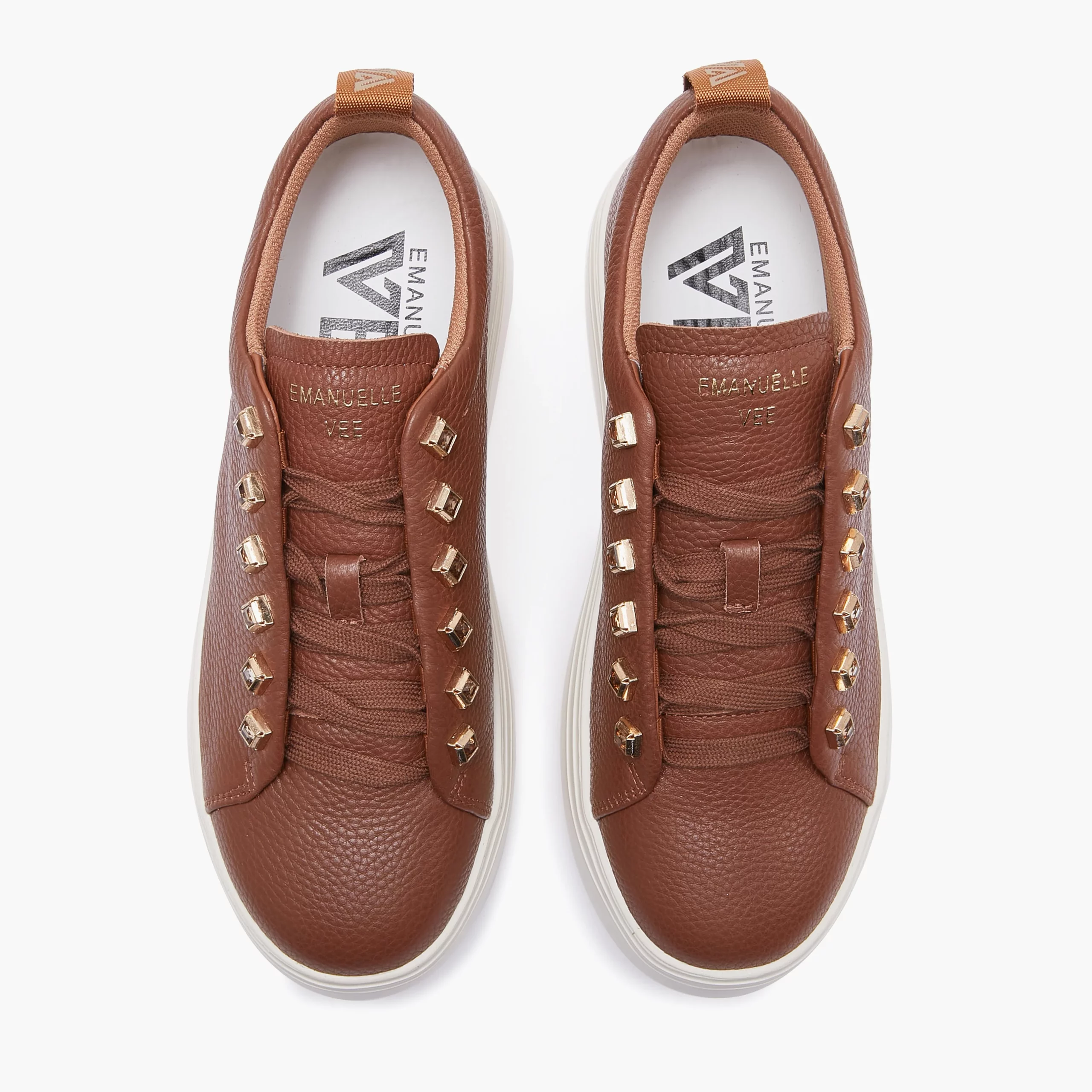 Sneaker a cassetta in pelle bottalata: dettagli micro borchie e suola in eva leggera.