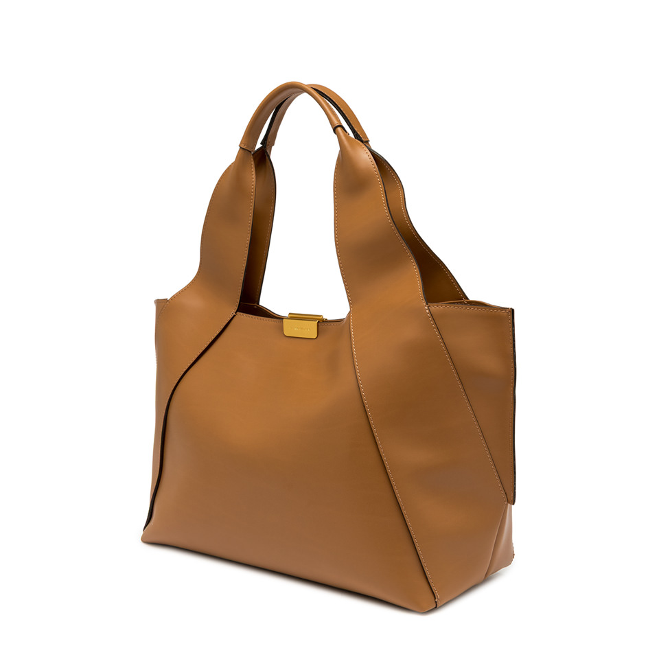 Vivi è la nuova shopping bag sfoderata firmata Gianni Chiarini Firenze, dal design essenziale e ricercato. Realizzata in pelle liscia effetto vacchetta, è rifinita con impunture a contrasto che valorizzano la silhouette minimale e contemporanea. La chiusura è impreziosita da un dettaglio in metallo, che aggiunge un tocco distintivo al design.
