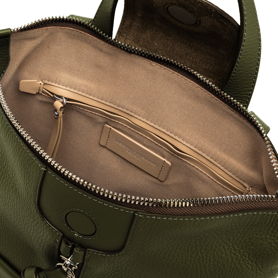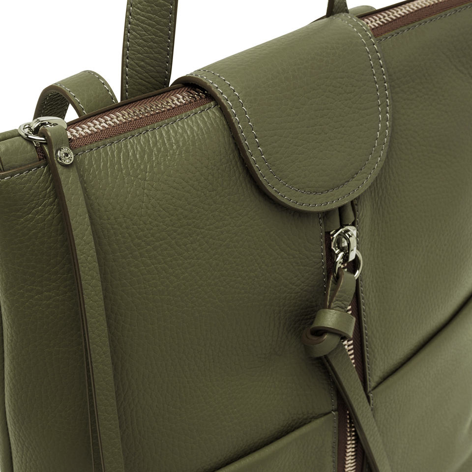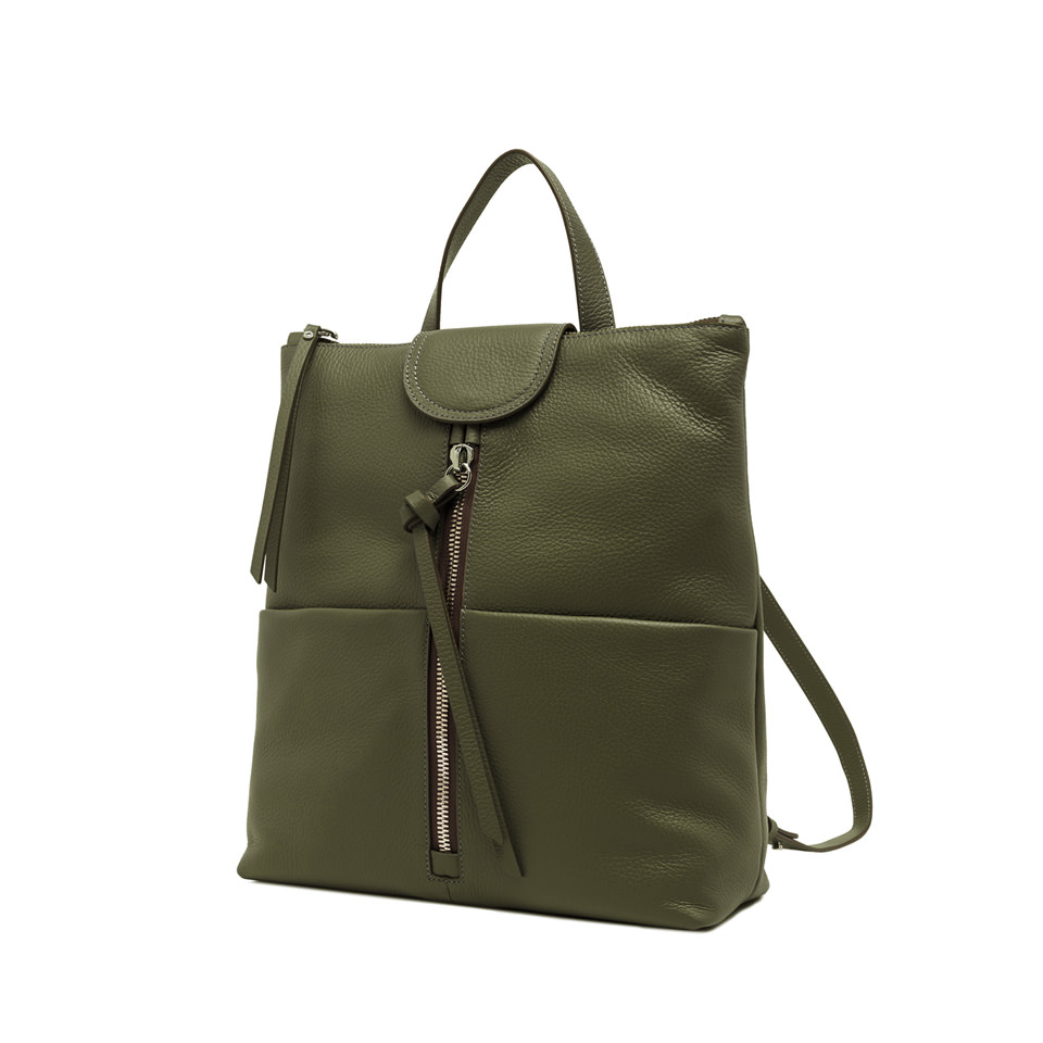 Giada è l’elegante zaino firmato Gianni Chiarini Firenze, realizzato in morbida pelle martellata. Le maxi tasche frontali e la chiusura superiore con zip ne esaltano la funzionalità, rendendolo l’accessorio ideale per affrontare la quotidianità con stile. Il design è completato da un pratico manico e spallacci regolabili, mentre l’interno, accuratamente organizzato, offre una tasca con zip e ulteriori tasche multiuso. Dimensioni: 31x33x12 cm.