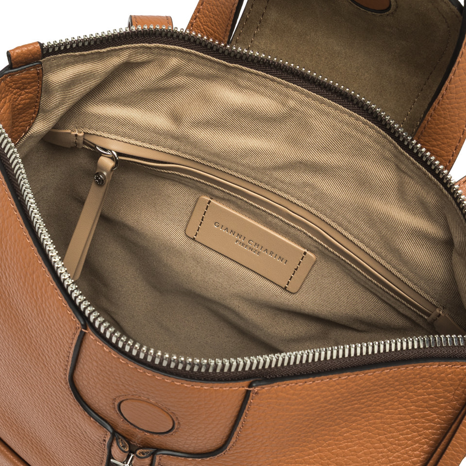 Giada è l’elegante zaino firmato Gianni Chiarini Firenze, realizzato in morbida pelle martellata. Le maxi tasche frontali e la chiusura superiore con zip ne esaltano la funzionalità, rendendolo l’accessorio ideale per affrontare la quotidianità con stile. Il design è completato da un pratico manico e spallacci regolabili, mentre l’interno, accuratamente organizzato, offre una tasca con zip e ulteriori tasche multiuso. Dimensioni: 31x33x12 cm.
